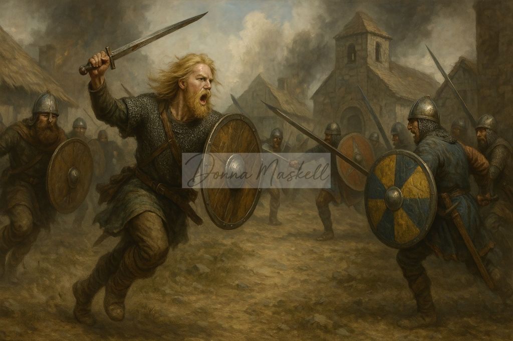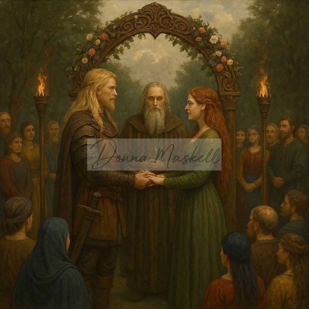 On an early spring day, the longboat Dragon Wing sails the coast near the villageOn the open sea at night, there is little light to show the crew of the longboat Dragon Wing the course they must sailA Viking warrior stands alone, thinking of battles to comeA young Viking woman, armed for battle, awaits the instructions of the leaders.A young redhaired Viking woman stands proudly in her warm cloakA young Viking shieldmaiden sits and listens to the discussion of the village elders.On a gray day, a Viking couple celebrate their wedding.An overcast spring day in a medieval Viking village.A blond Viking warrior leads his crew into battle against Norman soldiers during a village raidA pregnant Viking wife pauses and wonders when her husband will return from raidingA blond Viking warrior and his wife stand on the seashore, talking about the futureA blond Viking warrior stands aloneOn a sunny spring day, a Viking couple take their wedding vows.A blonde Viking woman carries a bouquet of flowers.